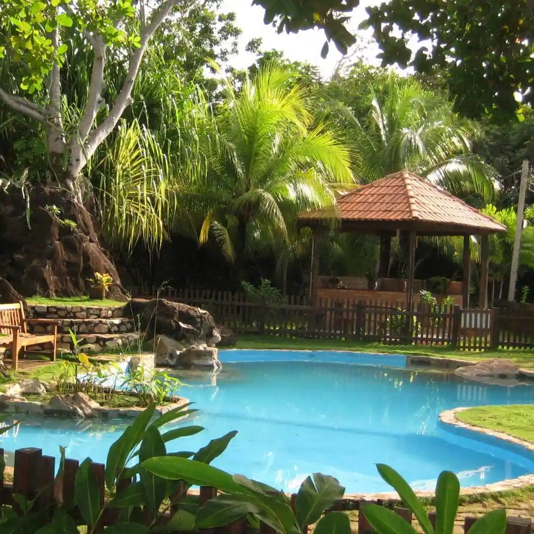 Free-form garden swimming pool