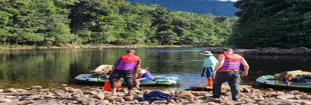 Excursion to Turtle Mountain via boat and hike. If you think this hike may be too strenuous, you can take an alternative boat trip to Stanley Lake to search for the Giant River Otters and Black Caiman.